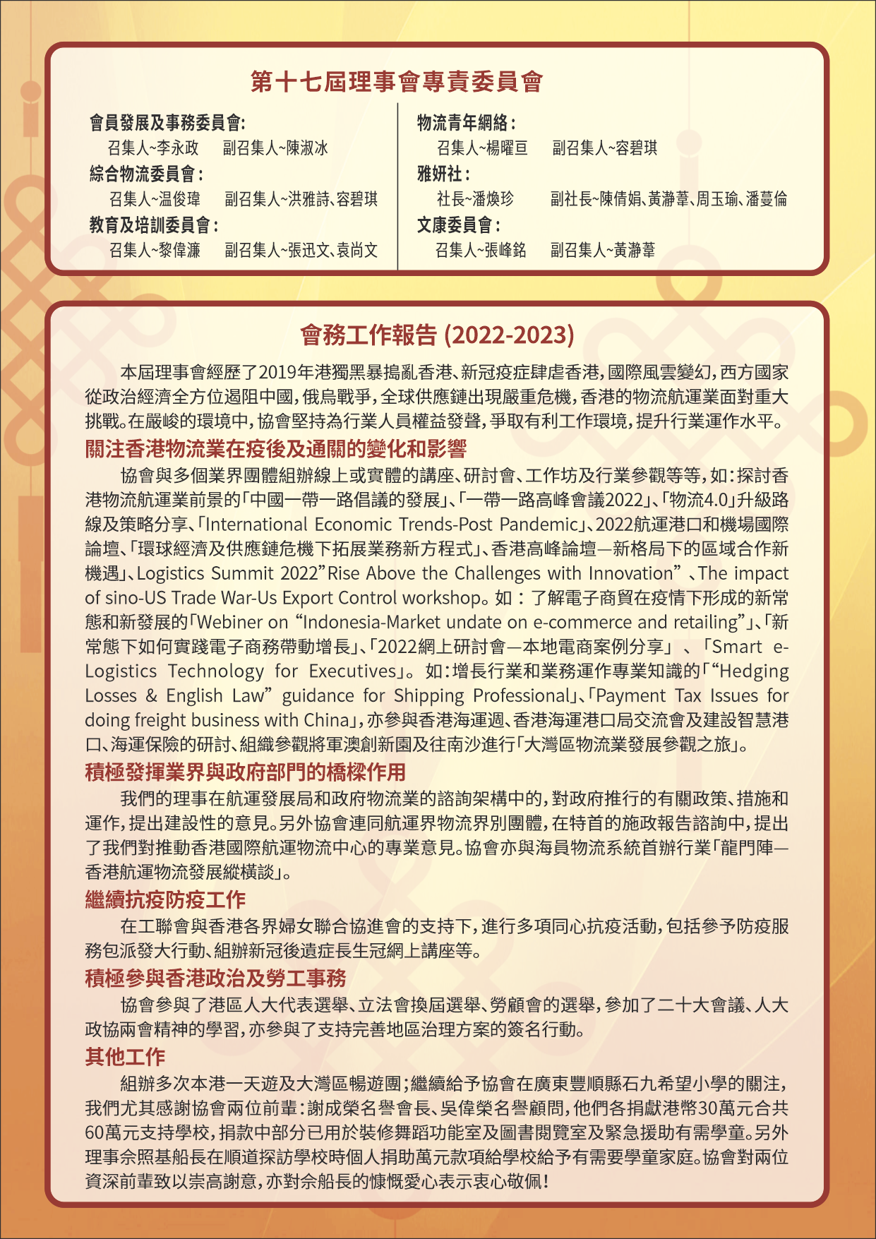 紀念特刊,既記錄本會多年的工作點滴,又記錄不少本港航運及物流從業員的成長與貢獻,也收集與輯錄物流海陸空人士在當時關注的業界情況,對本會意欲充當的業內溝通橋樑角色有正面的意義,對本港航運及物流前景的探索起了積極的作用。因此,協會決定盡量在逢五、逢十的週年誌慶出版紀念特刊,希望會員及業界友好繼續支持!